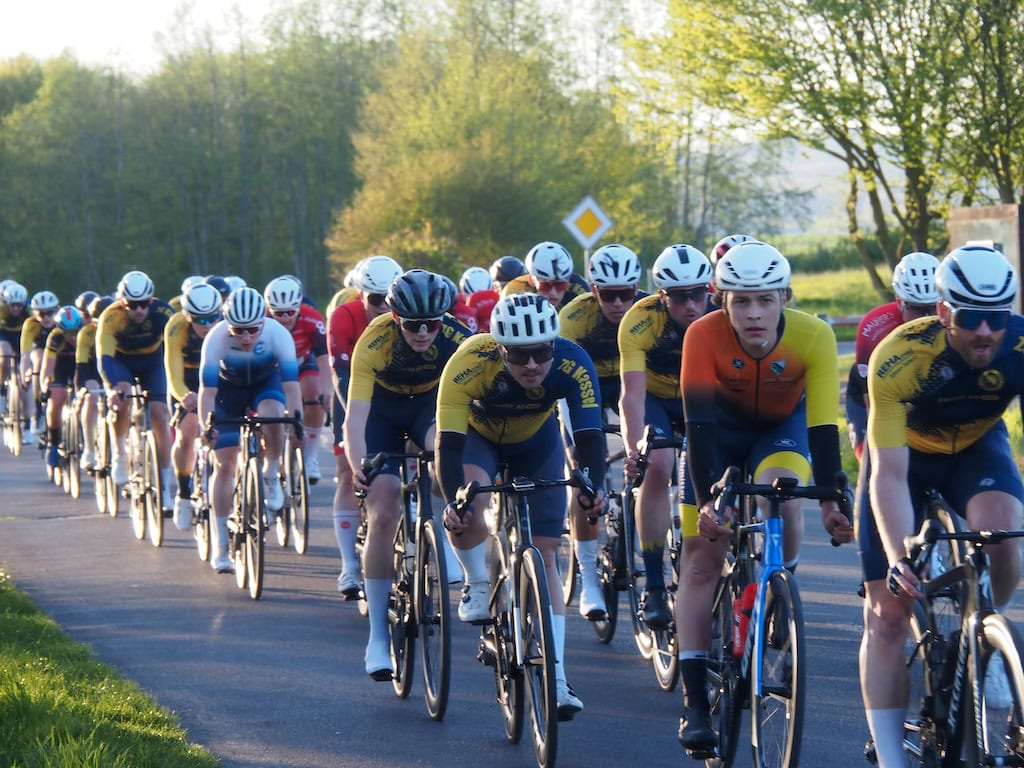 Mit 43,5 km im Durchschnitt schlugen die Amateure ein wirklich flottes Tempo an – bei den den ersten beiden Wertungen waren es sogar noch 47 km/h. So schnell, dass die Elite erst nach vier Wertungen endlich den Anschluss geschafft hatte. Bis dahin hatten sich Hans Langendörfer und Matthias Borchert von der Zweirad-Gemeinschaft Kassel mit Laurenz Beck vom Eschweger TSV und Jan Brodin vom VC Frankfurt schöne Duelle in den Wertungssprints geliefert. In der Schlussabrechnung hatte Laurenz Beck die Nase vor Hans, Matthias und Jan. Dahinter kamen vier weitere blau-gelbe Fahrer sowie ein weiterer Frankfurter in die Punkte.